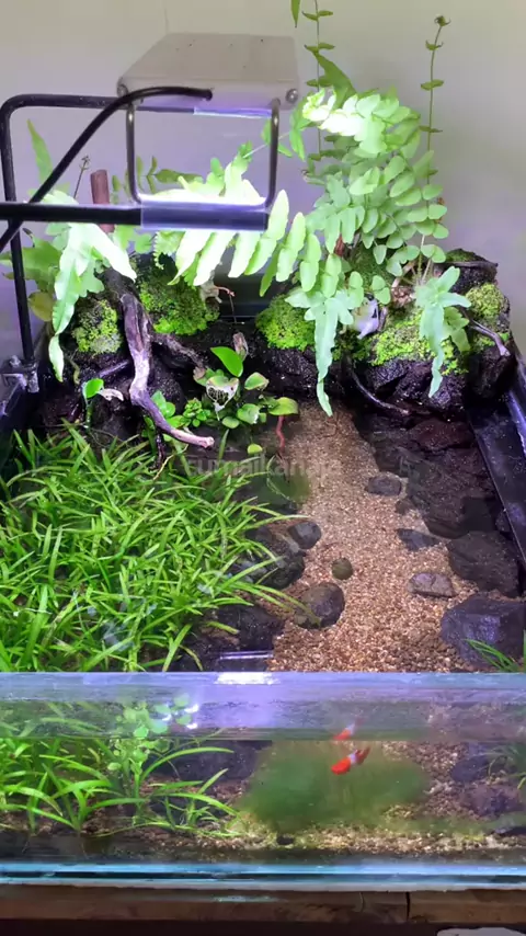 beginilah kondisi shallow tank yg ditinggalin sekitar 1,5 bulan dan ga kerawat, paling cuma minta tolong orang rumah buat nyalain-matiin lampu #aquascape #shallowtank #lowtechtank #ikanhias #