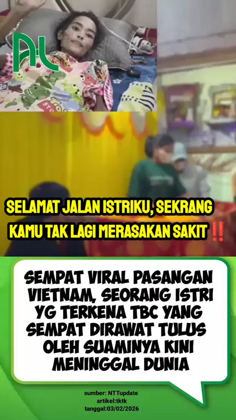 sempat viral pasangan Vietnam seorang istri yang terkena TBC yang tempat dirawat tulus oleh suaminya kini meninggal dunia ‼️