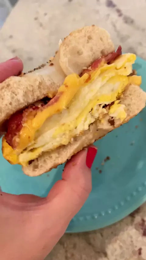 Bacon egg and cheese with extra egg this time #breakfast