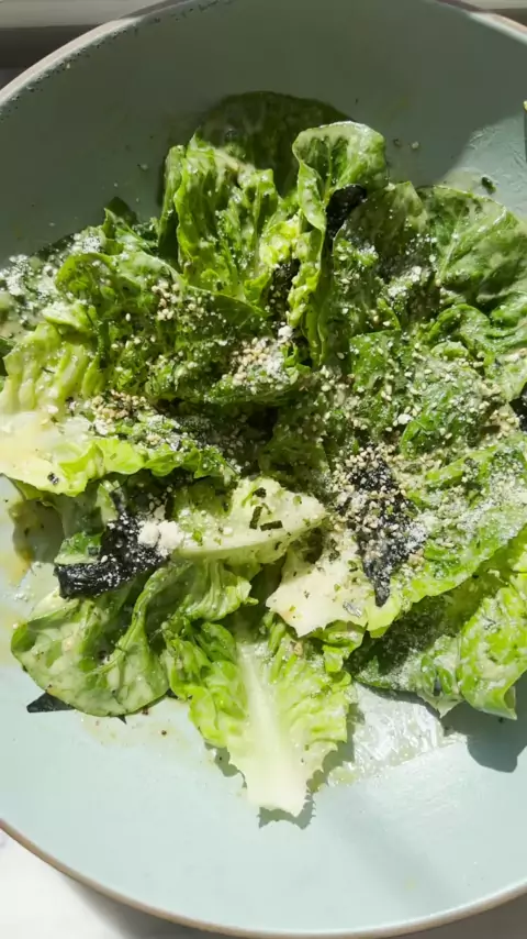 Obcecada com este Nori Caesar Salad! Receita completa no blog, linkada na minha bio. # caesarsalad # recipesof # cooking # food # salad # saladrecipe # nori # anchovas