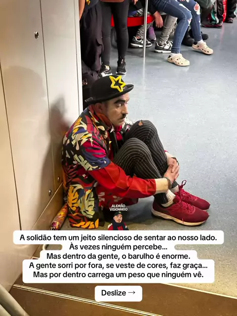 A solidão… ela tem um jeito silencioso de sentar ao nosso lado. Às vezes ninguém percebe, mas dentro da gente o barulho é enorme. A gente veste cor, faz graça, tenta seguir… Mas por dentro carrega um peso que ninguém vê. Porque a solidão não escolhe lugar. Ela aparece no meio do metrô, no meio da rua, no meio da multidão. Mesmo cercado de gente, dá pra se sentir completamente sozinho. Todo mundo tem uma batalha que esconde no silêncio. #Solidão #Reflexão #VidaReal #Cotidiano #Humanidade
