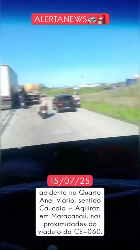 🚨 ACIDENTE NO QUARTO ANEL VIÁRIO Na tarde desta terça-feira, 15/07/2025, foi registrado um acidente no Quarto Anel Viário, sentido Caucaia - Aquiraz, em Maracanaú, nas proximidades do viaduto da CE-060. O caso envolveu um motociclista. Até o momento, não há informações oficiais sobre a dinâmica do acidente, nem confirmação de feridos. O trânsito apresenta lentidão no sentido Caucaia - Aquiraz. #noticiasdeultimahora #ceara3xmaisforte #ultranotícia #últimasnotícias #acidente