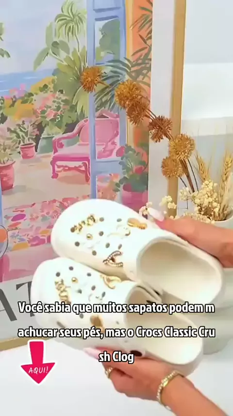Crocs Classic Crush Clog cor osso sapatos de praia femininos plataforma macia como nuvens