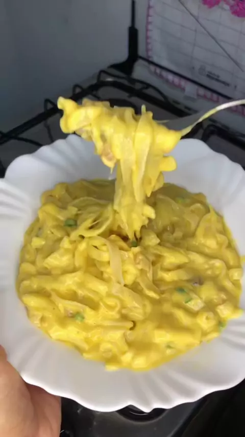 Macarrão com bacon ao creme de batata ✨ #receitas #cozinhando