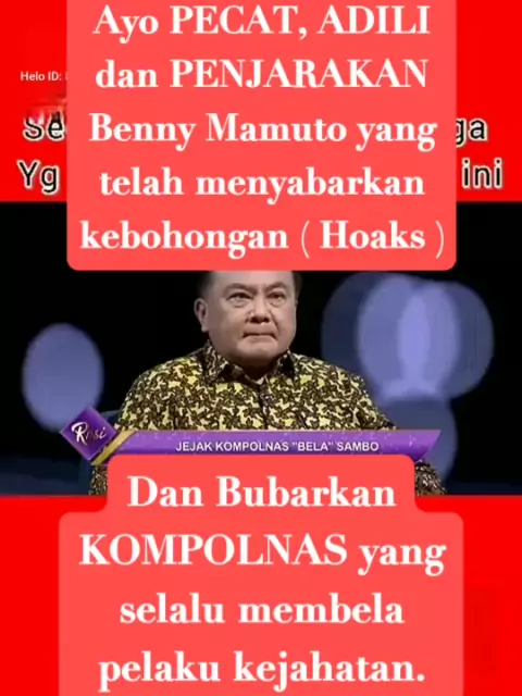 Pecat, Adili dan Penjarakan Benny Mamuto yang telah membuat keonaran dengan menyebarkan kebohongan publik ( Hoaks ). #KOMPOLNAS #Hoaks #polri #nkri #km50