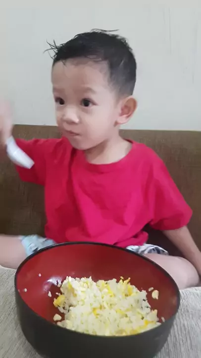 loooh tumpah kaaan... Anak Balita Belajar Makan Sendiri