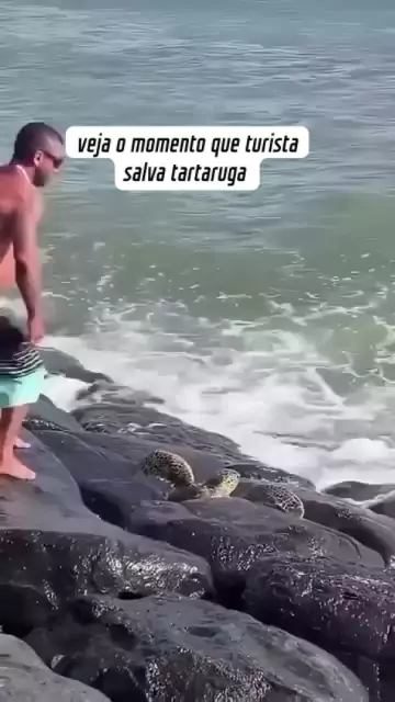 veja o momento que turista salva tartaruga