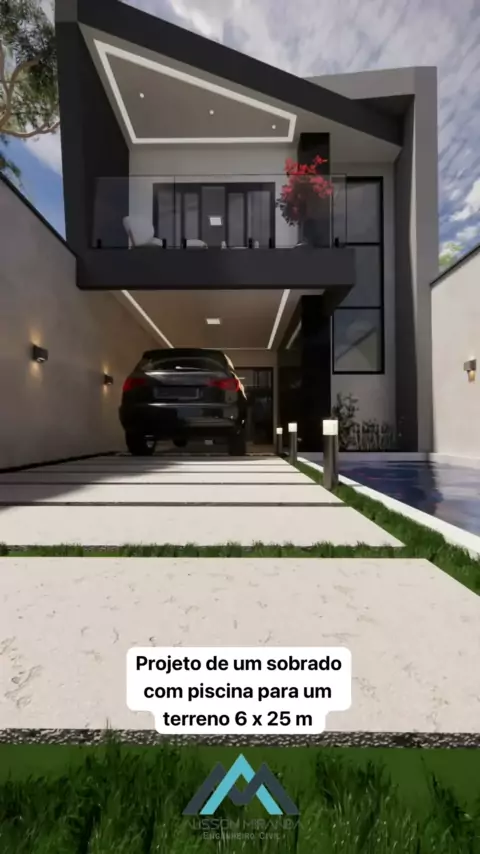 Projeto de um sobrado com piscina para um terreno 6 x 25 m. Novos projetos todos os dias ✅ #casa #engenharia #sonho #sobrado #projeto