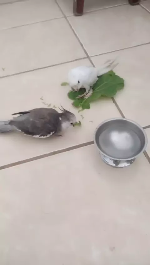 Introdução alimentar com couve folha na Albina Jennie recém chegada 😍😍 #calopsita #meupet #introducaoalimentar