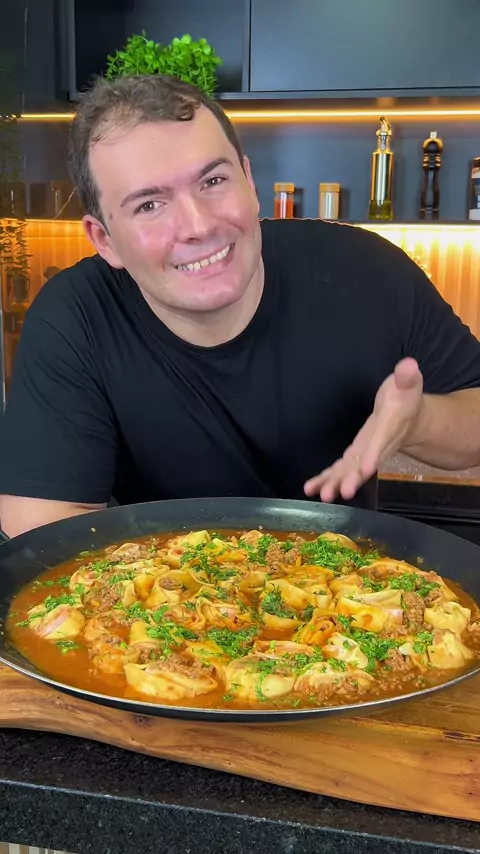 RONDELLI A BOLONHESA Ingredientes: • Massa de pastel • Requeijão • Presunto e muçarela (fatias) • 500g carne moída • 1 cebola, 2 dentes de alho • Páprica doce, sal, pimenta • 1 sachê de molho de tomate • 1/2 xícara de água • Cheiro-verde #rondelli #bolonhesa #Receita #massa #viral