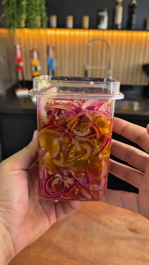 CEBOLA DE CHURRASCARIA Ingredientes • 5 cebolas roxas grandes • Água • Orégano • Pimenta calabresa • Chimichurri • Sal • Pimenta-do-reino • Vinagre • Azeite de oliva #CebolaDeChurrascaria #Churrasco #Acompanhamento #ChurrascoRaiz