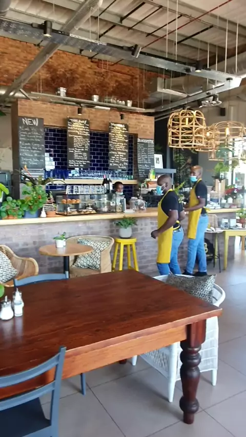 showcasing a different type of mall coffee shop! beautiful deep blue tiles with hand-crafted light fixtures and rustic brick finishes. #Kwai #homedecor #allofarchitecture #onlyonKwai #viral
