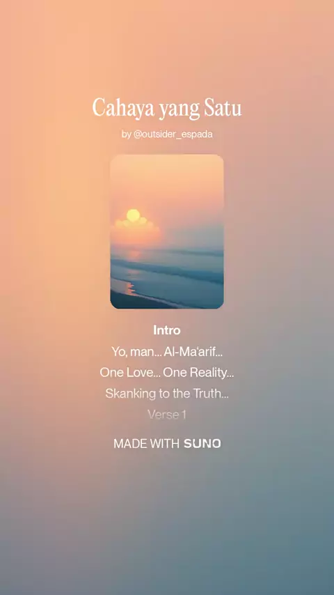 Cahaya yang Satu "Tak perlu bingung oleh banyaknya warna, pandang ke dalam, temukan Dia di hatimu." 🧡💛💚##musikviral#suno#ibnuarabi#cahayayangsatu#espadaproduction#espada331#rootreggaemusic#reggaeton#reggae#reggaetonviejito
