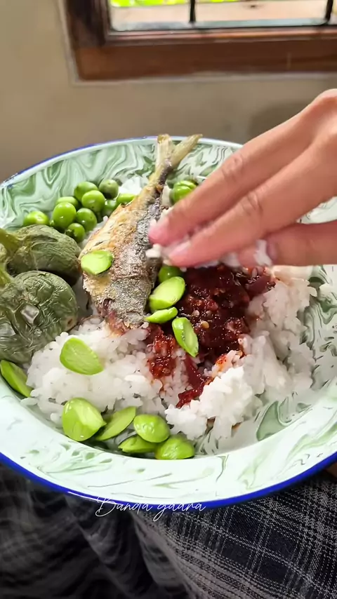Sambel terasi merah pake ikan peda, terung bulat, leunca, pete behhhh raos pisan euy 😍 #sambelterasimerah #terasimerah #menusederhana #masakanrumahan #bundagaara
