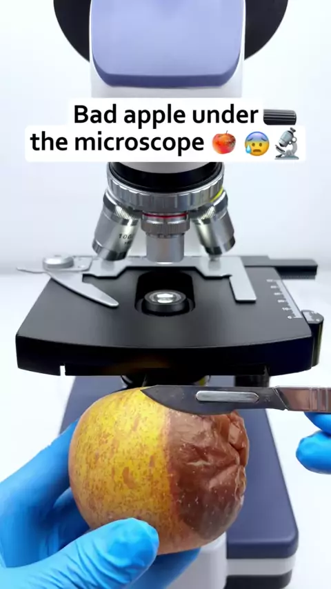 Você sabe como é uma maçã podre quando ampliada 400 vezes sob um microscópio? # microscope # undermicroscope # #