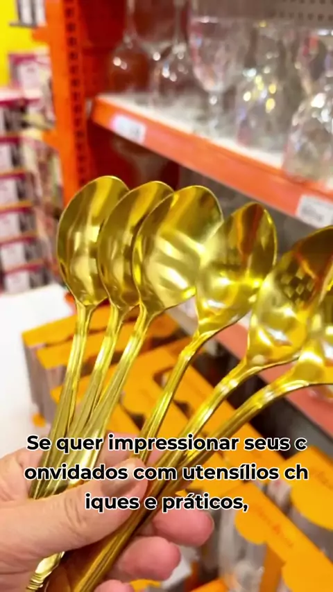 Colher dourada que parece luxo, mas é super resistente e prática! #ColheresDeLuxo #UtensíliosInoxidáveis #MesaElegante #JantarEspecial #DecoraçãoDeMesa