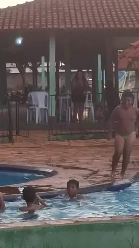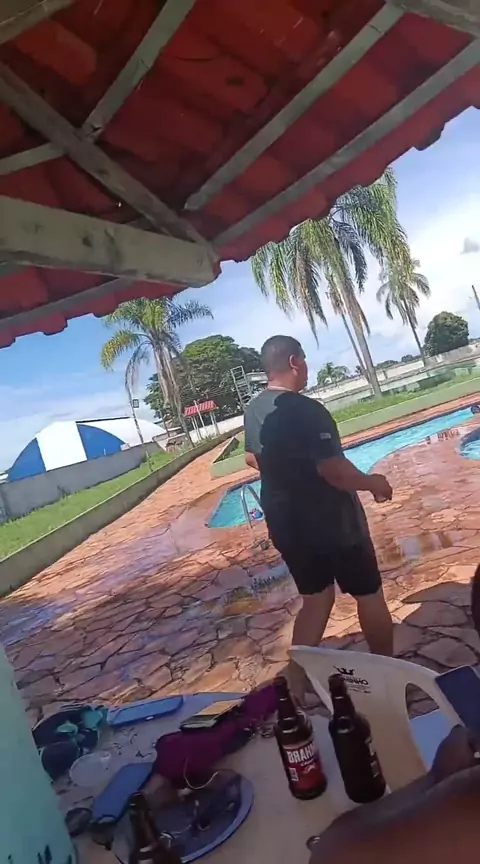 @sedutora:@marciamiranda:Uma fotografia fotorrealista, ensolarada e com atmosfera de estilo de vida, [usando exatamente o rosto da foto enviada ao mude nada do rosto]. A cena mostra a mulher morena bronzeada em ação dentro de uma piscina cristalina, olhando de forma intensa e confiante para a câmera com um sorriso alegre enquanto passa a taça na mão. Ela tem cabelo longo, preto e bem liso todo desalinhado, ela está com a parte superior do biquíni de fibra natural com missangas azul Tiffany e lar