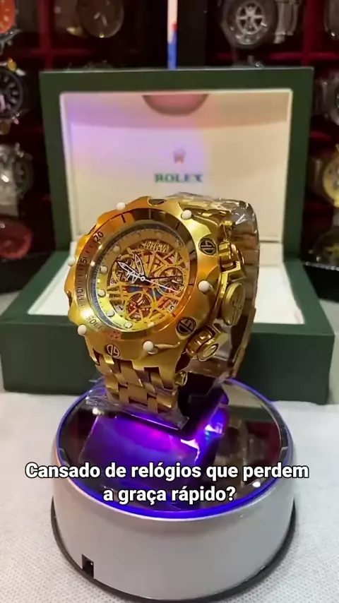 Relógio dourado Invicta que combina estilo e resistência no seu dia a dia #RelógioInvicta #EstiloEDurabilidade #AcessórioMasculino #ResistenteÀÁgua #PromoçãoRelógios