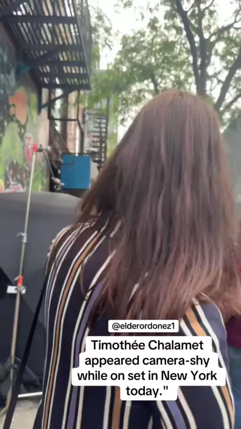 Timothée Chalamet ostenta um bigode e óculos no set de novo filme Marty Supreme em Nova York hoje.