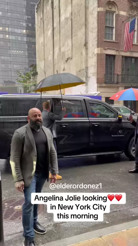 Angelina Jolie procura ❤ ️ ❤ ️ participando de uma exibição de cinema em Nova York esta manhã.