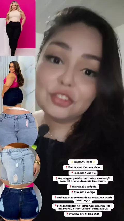 ✨️ Loja: Sonho de Maria ✨️ ➡️ Insta: @lojasonhodemaria 📍Conjuntos, croopeds, vestidos, shorts, calças, saias, macaquinhos e bodys a partir de 35 reais. 📍Peças do tamanho 44 até o 50. 📍Tecidos: beach gloss, paetê, tulê, couro fake, malha e tela arrastão. 📍Fabricação própria. 📍Atacado. 📍Envia para todo o Brasil. 📍Loja 1: Feirão Buraco da Gia, rua H, n° 275 - subsolo. Loja 2: Expansão do Feirão São José, loja 123. 📍Contato: (85) 9 9819 1443 / (85) 9 98821 2156.