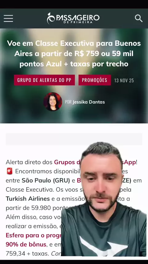 Executiva pra Buenos Aires por R$ 759 o trecho… ou 59 mil pontos Azul. Essas oportunidades aparecem e somem rápido — e quase ninguém vê. Se quiser receber esse tipo de alerta antes de todo mundo… me segue aqui. ✈️🔥 #milhas #executiva #viagens #azul #gestaodemilhas