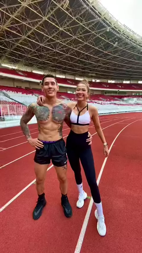 That feeling after an amazing workout ✌#andreabimo #postworkout #couples #workout #serunyaolahraga##couples @ganindrabimo
