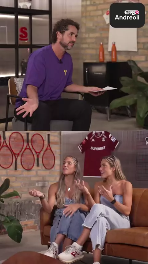 Histórias do Esporte 🏊‍♀️ O esporte sempre reserva momentos únicos e inusitados, e esse é um deles. Em um dos primeiros episódios do Andreoli Modo On, as gêmeas do nado sincronizado, @biaebrancaferes, compartilharam uma história divertida de um encontro inesperado com ninguém menos que o multicampeão do tênis Novak Djokovic. 🎾 Quer saber todos os detalhes desse bate-papo entre nosso apresentador @andreolifelipe e as irmãs? O episódio completo está disponível no YouTube (Andreoli Modo On) e t