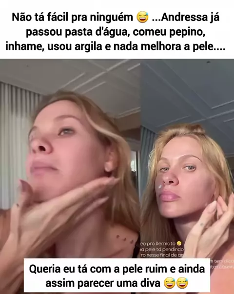 Não tá fácil pra ninguém 😅😅 Andressa já tentou várias coisas para a pele, mas nada funciona... Queria eu estar com a pele ruim e ainda assim parecer uma diva! 😅🥰 # # #viral #andressasuita