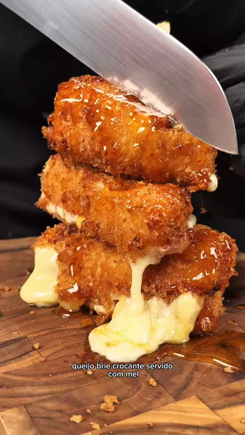 Isso é absurdamente gostoso. E seguindo o passo a passo rapidinho do vídeo tu fará igualzinho. Empanamento “básico” ovo, farinha de trigo e Panko. Tem mais alguma ideia pra servir junto? Ou o que tomar junto com essa maravilha. Deixe aqui 👇 pra mim. O Brie precisa estar firme para ir pra fritura, não deixe ele muito tempo fora, pois é um queijo delicado. Bom apetite!