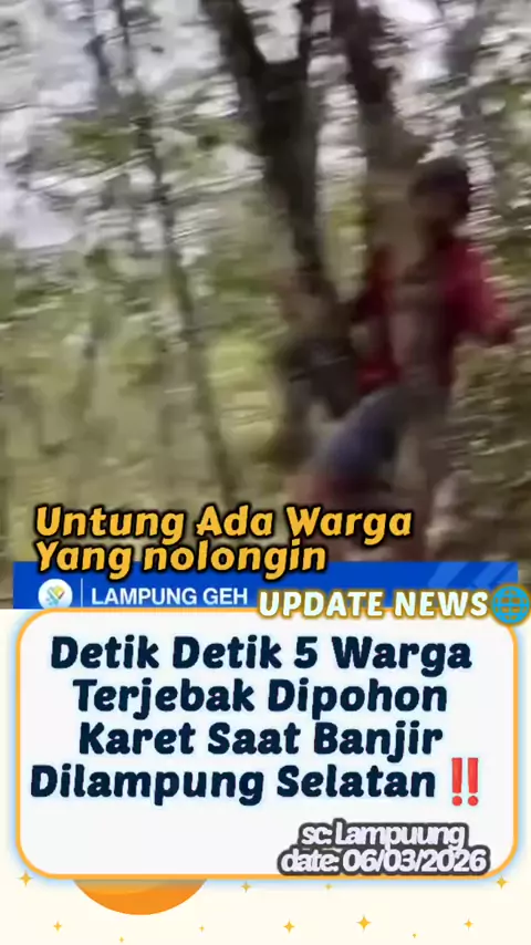 Sebanyak lima orang warga dilaporkan terjebak di atas pohon karet untuk menyelamatkan diri dari arus banjir yang sangat deras di Lampung Selatan, pada Jumat sore, 6 Maret 2026 #snackvideo #trending #liputanramadan #lampung #berita