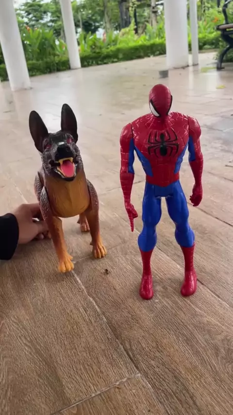 O brinquedo do Homem-Aranha assustado pelo cão