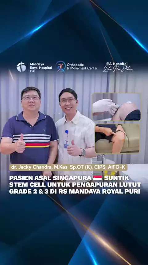 Mengidap OA Grade 2-3, kerusakan pada tempurung dan sendi lutut pasien asal Singapura ini memang belum parah, tapi nyerinya sudah sangat mengganggu. Alih-alih pasrah, ia mempercayakan lututnya pada terapi Stem Cell yang ditangani langsung oleh dr. Jecky Chandra, Sp.OT (K). Pendekatan ini modern dan presisi: meregenerasi jaringan yang rusak dari dalam, tanpa sayatan bedah besar. Kini, cerita lamanya tentang nyeri lutut perlahan berubah. Pasien merasakan kenyamanan yang sudah lama hilang; nyeri m...