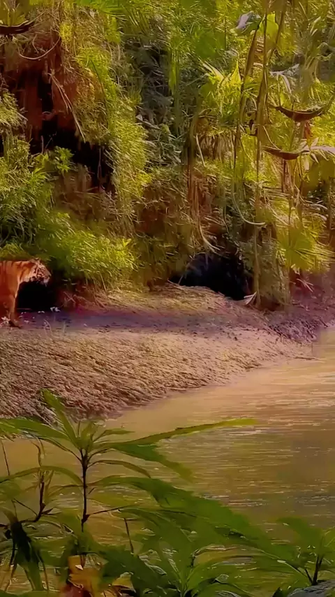 Até mesmo um rio com vários metros de largura está a apenas um salto de distância para um tigre #vidaselvagem #vidaanimal #tigre #natureza #viraliza