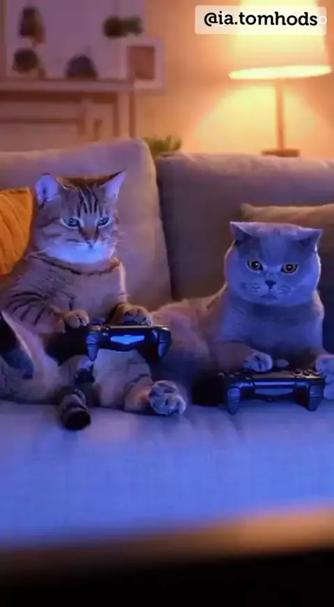 2 Gatos jogando videogame! #gatos #humorIA #videogamer #ia #felinos