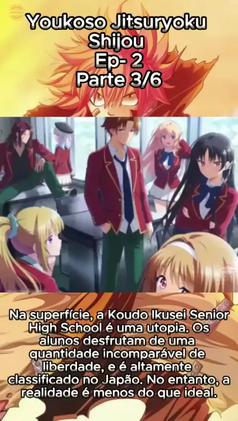 Youkoso Jitsuryoku Shijou Na superfície, a Koudo Ikusei Senior High School é uma utopia. Os alunos desfrutam de uma quantidade incomparável de liberdade, e é altamente classificado no Japão. No entanto, a realidade é menos do que ideal.#anime #viral #episodios #Melhoranime #yanokoji