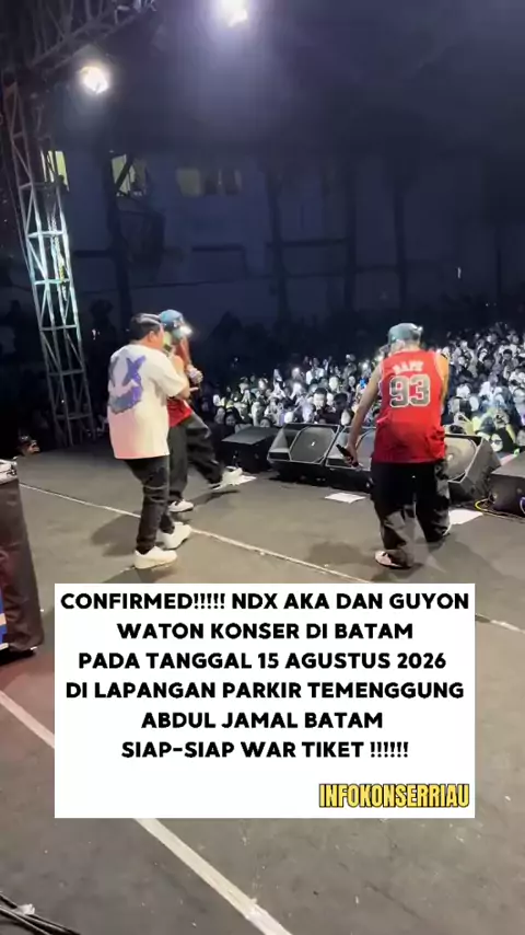 ✨ Persembahan Cinta Fezt #UntukmuBatam Vol. 04 πŸ“ Batam πŸ—“ 15 Agustus 2026 πŸ“Œ Lapangan Parkir Temenggung Abdul Jamal πŸ”₯ Akan tampil: Guyon Waton NDX AKA Omabidin 🎟 Tiket mulai dijual: πŸ—“ 1 Februari 2026 ⏰ Pukul 19.00 WIB πŸ’» dewatiket.id Siap nyanyi bareng dan galau rame-rame, Batam? πŸ’™ Pantau terus update selanjutnya dan jangan sampai kehabisan tiket! πŸ“² IG & : @persembahancinta #batam # #viral #infokonserriau