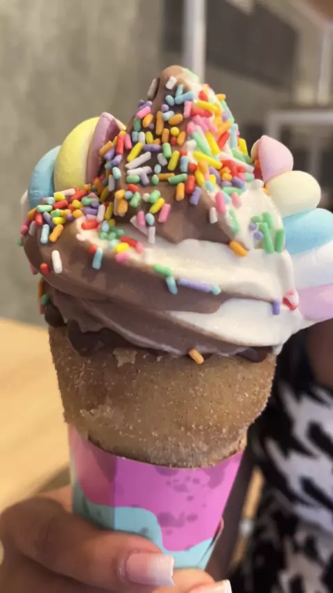 Esse é o gelato churros do unicórnio e cone trufado fica localizado na Av Cursino,4031 Ipiranga SP #sorvete #dica #doceria #doce #baoprakwai