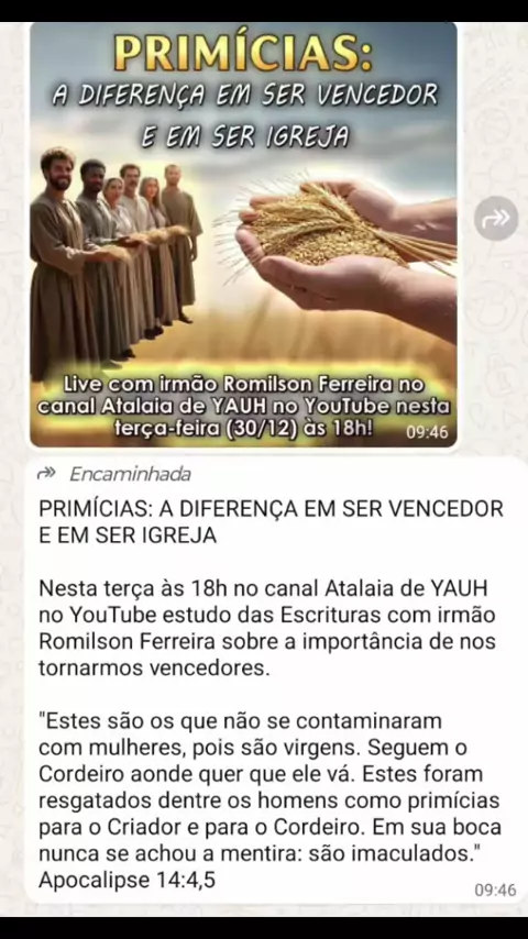 LIVE DO DOMINGO (09/11) COM IRMÃO ROMILSON FERREIRA: BABILÔNIA, A ORIGEM DAS RELIGIÕES Às 16h no canal Atalaia de YAUH no YouTube, com o tema de como todas as religiões se originam em Babilônia.    Em sua testa havia esta inscrição: MISTÉRIO: BABILÔNIA, A GRANDE; A MÃE DAS PROSTITUTAS E DAS PRÁTICAS REPUGNANTES DA TERRA. Apocalipse 17:5