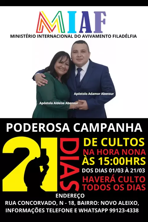 PODEROSA CAMPANHA, ENDEREÇO RUA CONCORVADO, 18, NOVO ALEIXO, MANAUS-AM, DO DIA 01/03 AO DIA 21/03 NA HORA NONA, ÀS 15:00H #Manaus #Pentecostal #viral #amazonas #Gospel