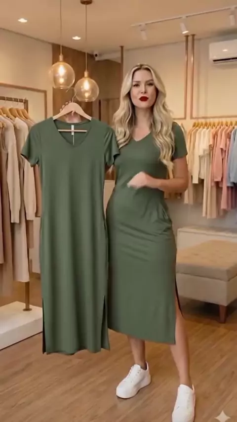 Vestido midi de bolço, tamanho único g veste do 40 ao 44, tecido viscolycra.