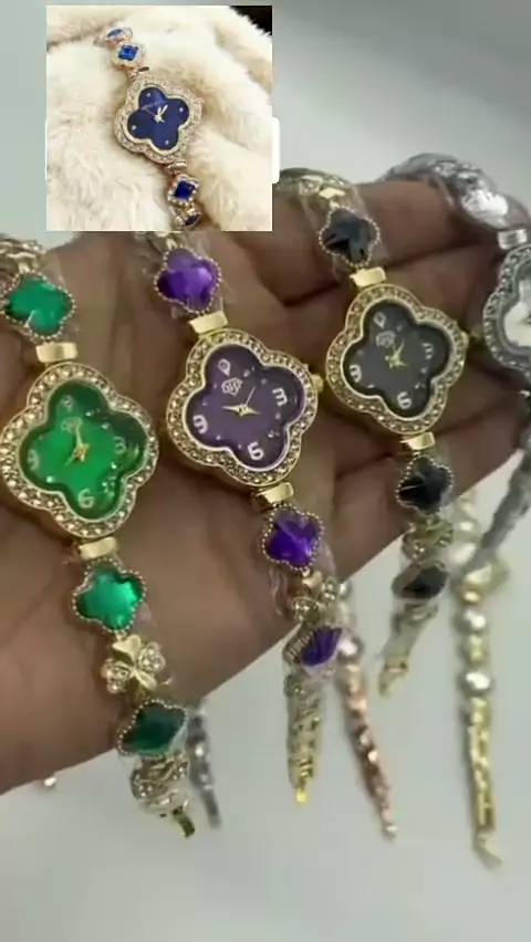 Relógio Feminino Chic Luxo Leve Estilo Trevo de Quatro Folhas com Inlays de Rubi e Diamantes