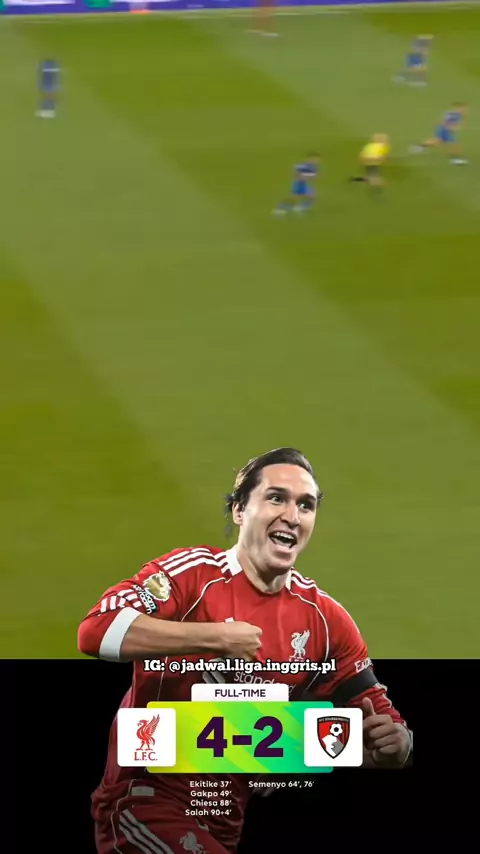 Nyaris berakhir imbang, The Reds pastikan kemenangan atas Bournemouth lewat Chiesa dan Mo Salah. #premierleague