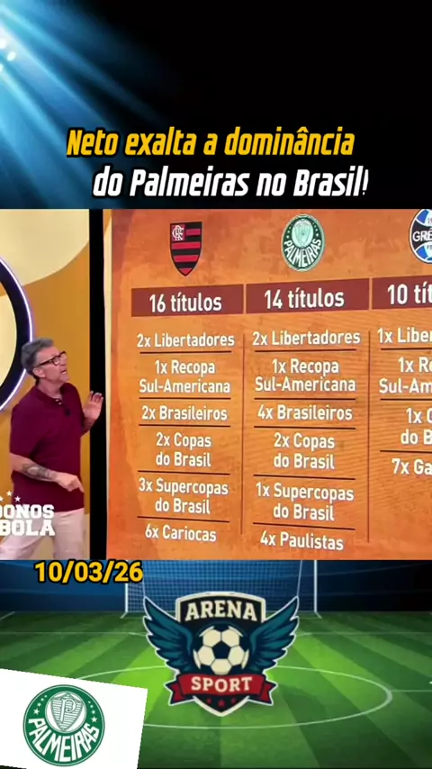 Neto exalta a dominância do Palmeiras no Brasil!