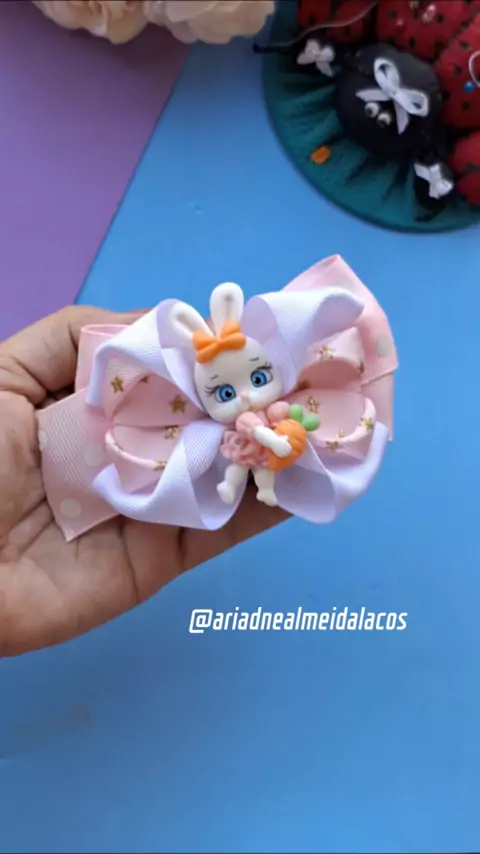 💖Quartouuu meu povo!✨️🎀 Hoje vamos de laço lindo com aplique de biscuit para encantar as princesas!🎀💖 🎀Medidas: Fita n⁰9 4 × de 32cm 🎀Gostou do conteúdo? Então curte, comenta, salva, compartilha com as amigas e me segue para mais dicas! Tchau, tchau!!🥰🥰 . . . . . . . . . . . . #inspiracaodiy#lacodemenina#viral #maedemenina#DIYLaço #ArtesanatoInfantil"#LaçoInfantil