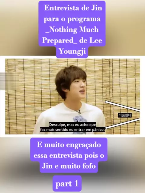 Entrevista de Jin para o programa _Nothing Much Prepared_ de Lee Youngji. part 1 Curte , comenta, compartilha e me segue para mais vídeos do run bts e do bts 😊#CrystalSynthEarnMoney2