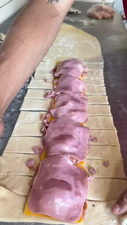 Massa: 500g farinha de trigo 50g açúcar 10g sal 10g fermento biológico seco 50g margarina 1 ovo Água até dar o ponto (≈ 240ml) #food #Receita #Comida #salgados #cozinha