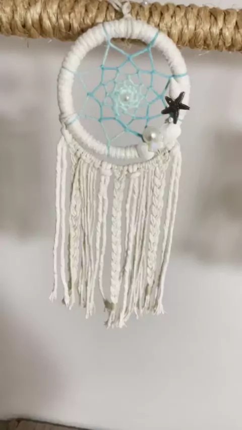 Filtro dos sonhos azul, modelo Mar 💙🌊 Disponível em nossa loja na shopee, com 5% de desconto para novos seguidores da loja arteatemporal.aa - 3 Modelos e Dimensões disponíveis: P - 10 x 30 cm M - 20 x 60 cm G - 30 x 70 cm Cada peça ganha 10cm mais, com a alça de pendurar. #decoracaopraiana #filtrodossonhos #apanhadordesonhos #MAR #decoracaohippiechic