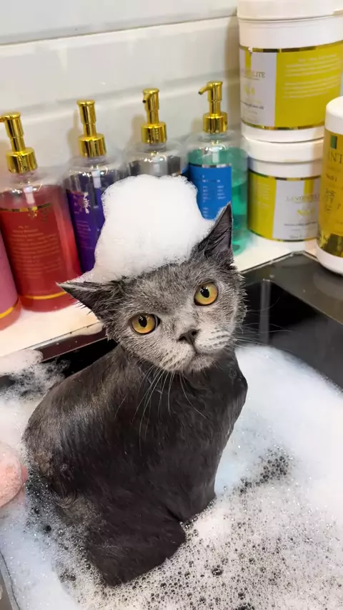 Bsh juga bisa anteng berendem loh 👻 #bsh #grooming #britishshorthair