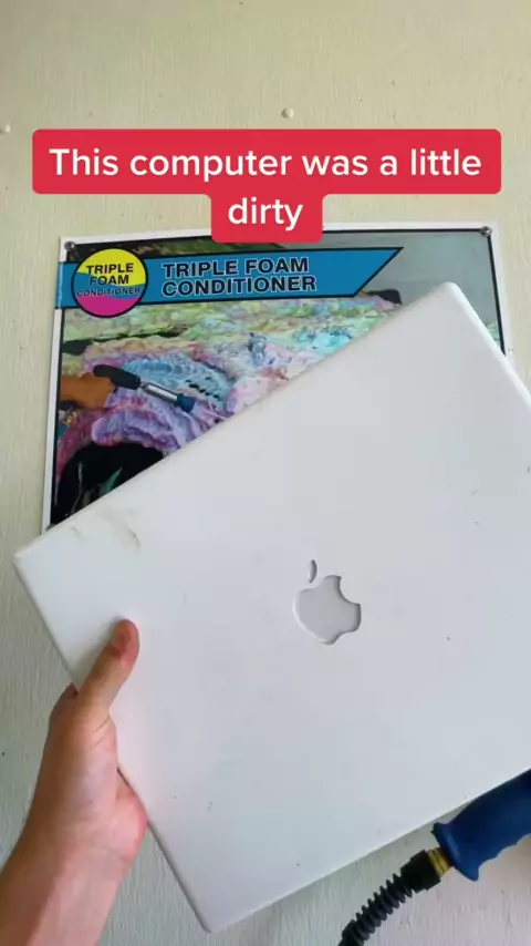Triple Foaming my laptop ๐Ÿ˜‚ #triplefoam #trifoam #carwash #carwashing #foamcannon #carfoam